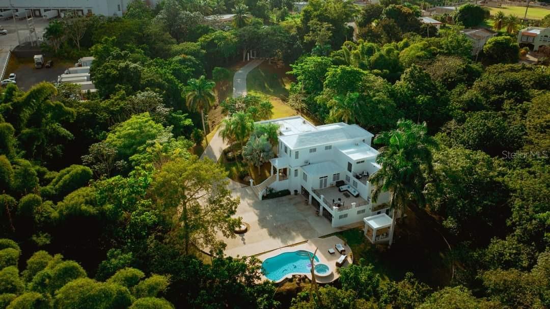 tunning fully remodeled estate offering 7,136 sq ft of living space in the exclusive Río Cañas area of Caguas, just minutes from the San Juan metropolitan area. Situated on approximately 2.5 cuerdas of land and bordered by the Río Cañas, this property offers a rare combination of privacy, natural beauty, and expansive living. The residence features 5 bedrooms and 5 full bathrooms, including a grand primary suite with an oversized walk-in closet room. Additional highlights include multiple terraces and balconies, a private swimming pool, a 3-car garage, a service/utility room, and a dedicated entertainment area. The grounds has lush landscaping with fruit trees and mature vegetation, creating a serene and private environment with no immediate neighbors. Move-in ready and ideal for those seeking space, privacy, and a unique lifestyle property within close proximity to San Juan.